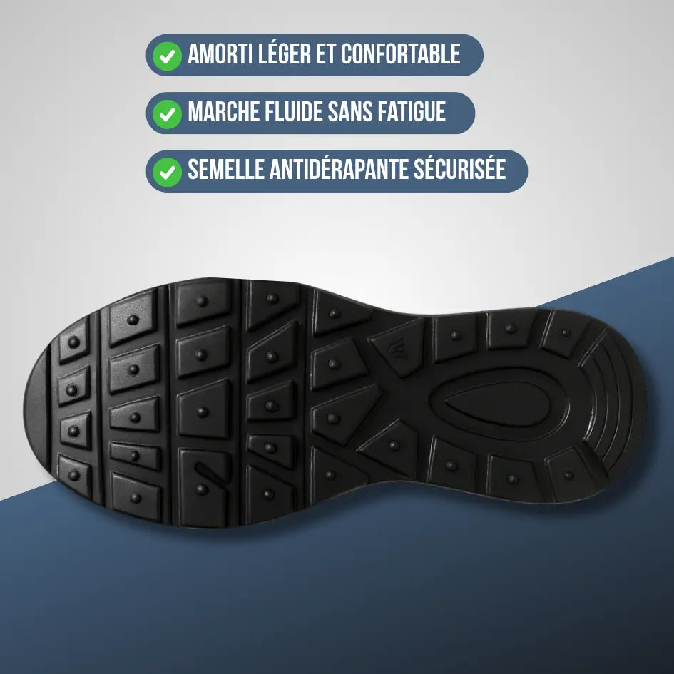 Semelles rembourrées qui réduisent les impacts à chaque pas, pour un confort total et une protection de vos articulations.